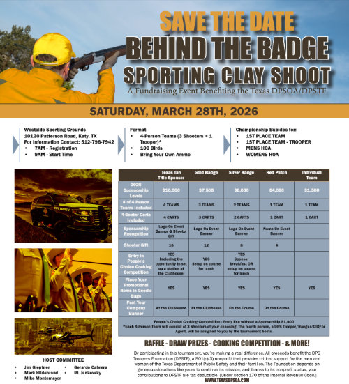 donate todayStay up to date with all the latest Texas DPSOA news. Sign up to receive email notifications on events, fundraisers and all Texas DPSOA updates.